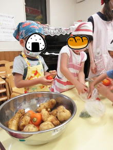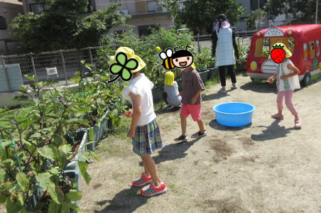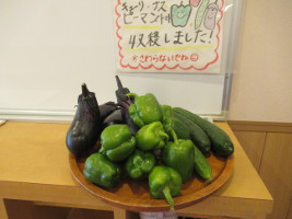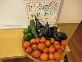 | 2020年6月【野菜】 保育園がお休み中も太陽の光をたくさん浴びて、 立派なじゃが芋、えんどう豆、ピーマン、ナス、トマト、キュウリになりました!! 今年もみんなで収穫して給食で美味しく頂きました。 ![]() こんなにたくさん収穫できました。 |