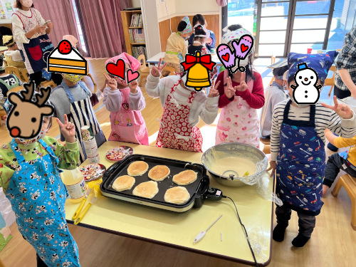 | 2022年12月23日(金)【クリスマス会】 クリスマスツリーの飾りつけをして、サンタさんが来るのを 楽しみにしていました。 ![]() 当日は、子ども達の楽器の演奏や保育士によるダンスが披露されました。 サンタさんもプレゼントを持って駆けつけてくれました。 みんな大喜びでした!! ![]() ![]() おやつの時間には、自分たちでホットケーキを焼き クリームなどで飾り付けをして おいしくいただきました。 ![]() ![]() 〜今年一年、ホームページをご覧いただきありがとうございました〜 |