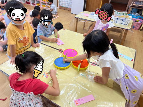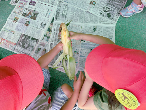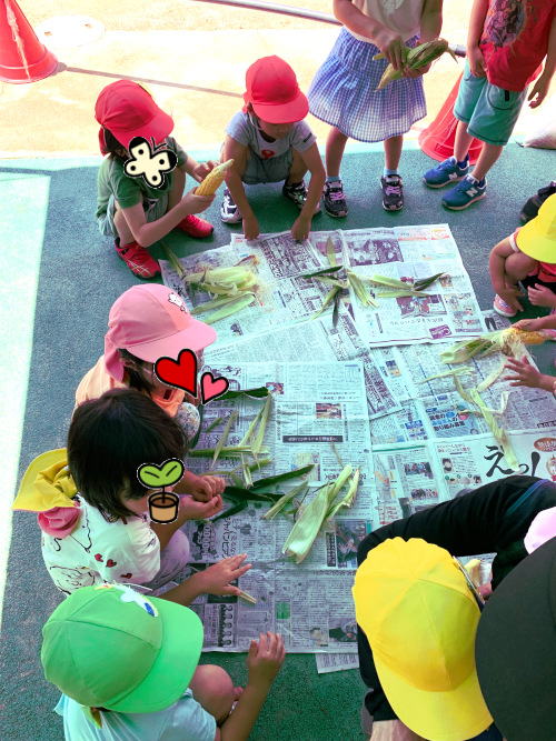 | ★2022年8月 【夏野菜の収穫】 おいしそうな野菜がたくさん採れました。 ![]() ![]() 収穫したオクラでオクラスタンプをしました。 ![]() トウモロコシの皮むきを体験しました。 ![]() ![]() |