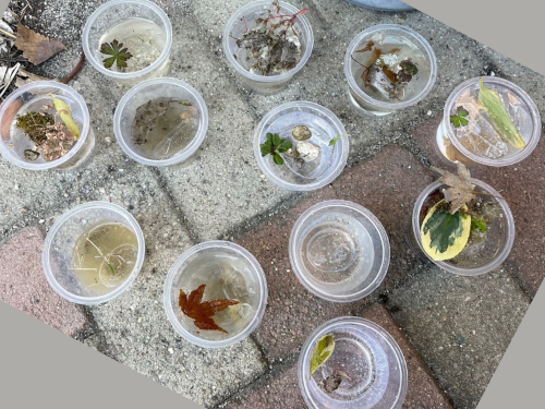 | 2023年1月 冬の遊び 子どもたちとかるた取りをしました。 ![]() ゼリーのカップに思い思いの葉っぱと水を入れ、凍らせました。 きれいな氷のアートが出来ました。 ![]() |
